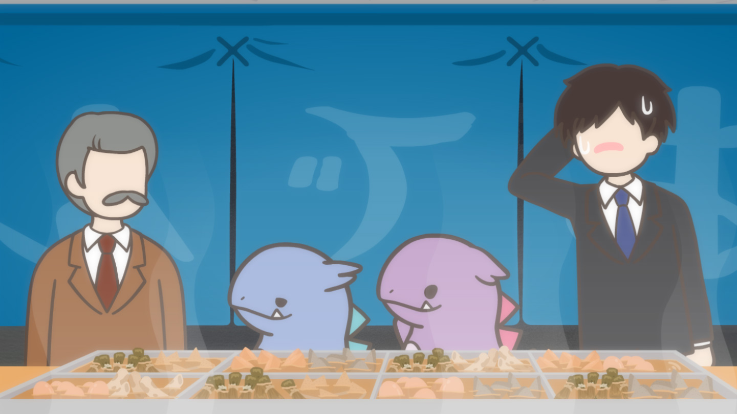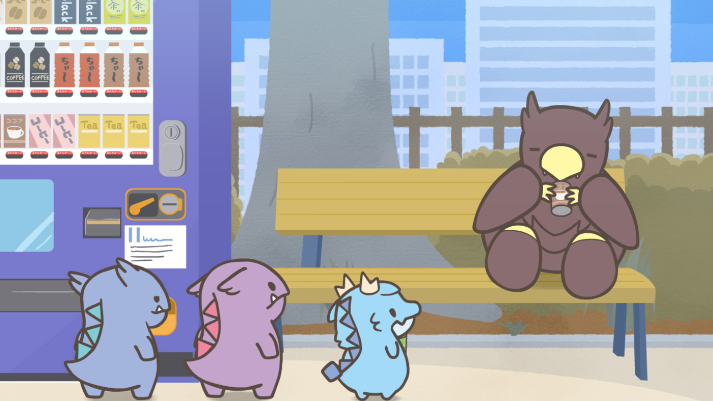 ピクニックをするためにコンビニで買いものするぬしとめらたち。